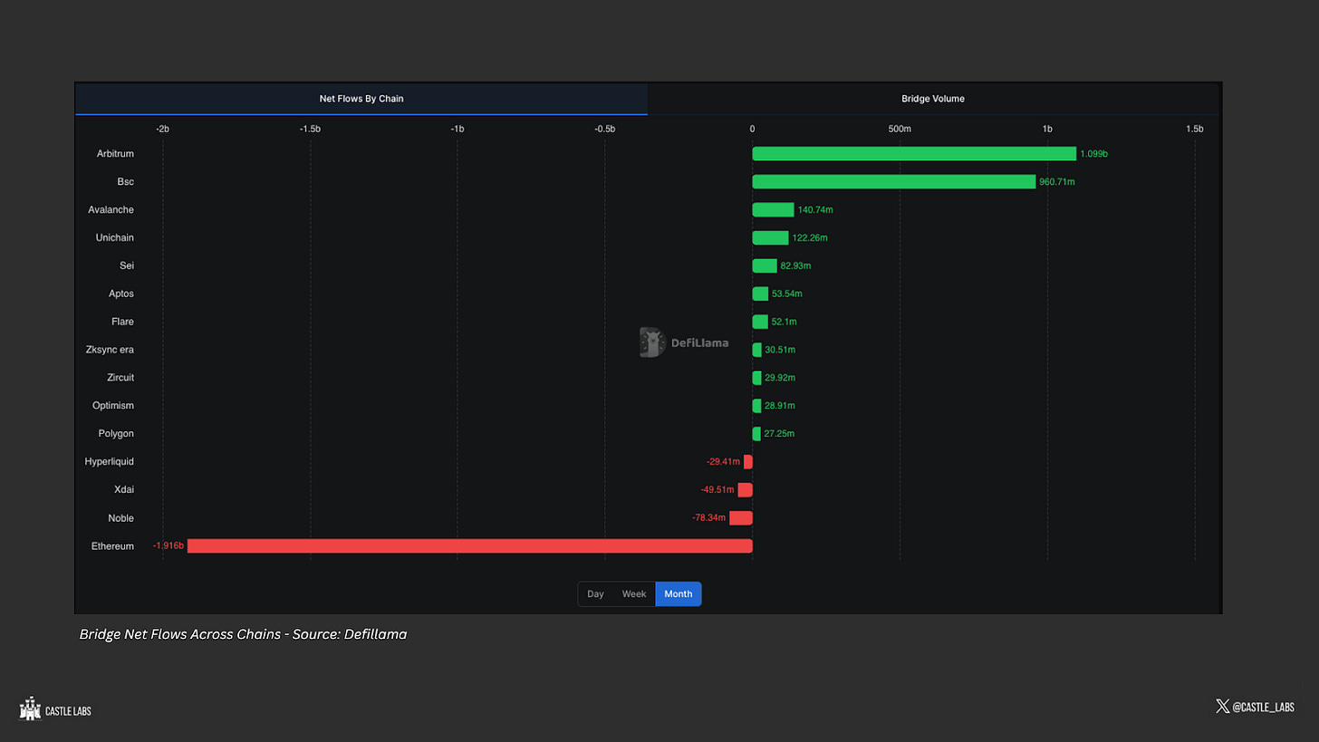 Over the last month, Arbitrum has experienced net inflows of over $1 billion, ranking it first among networks in terms of inflows.