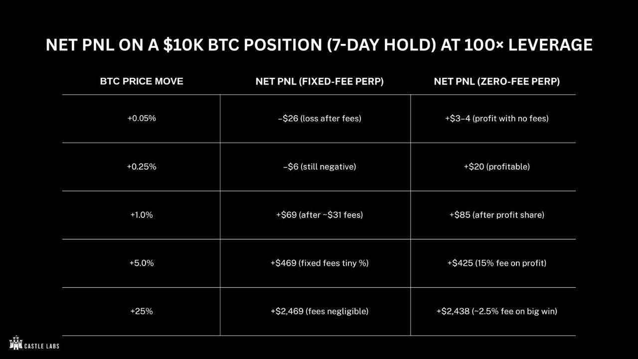 Fixed entry and exit fees reduce the edge: On traditional perp exchanges, traders typically pay a fee on both entry and exit (often 0.1% each way), which means a trade must move significantly just to break even. For high-frequency or small-margin traders, these costs can convert marginal wins into net losses.
